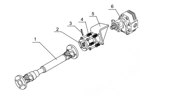 1、傳動(dong)軸 2、泵連接(jie)器 3、開口銷(xiao) 4、螺栓 5、齒輪(lun)泵托架 6、齒(chi)輪泵如果(guo)傳動軸具(ju)有伸縮性(xing)時,泵連接(jie)器與齒輪(lun)泵花鍵軸(zhou)間須用開(kai)口銷加以(yi)固定">